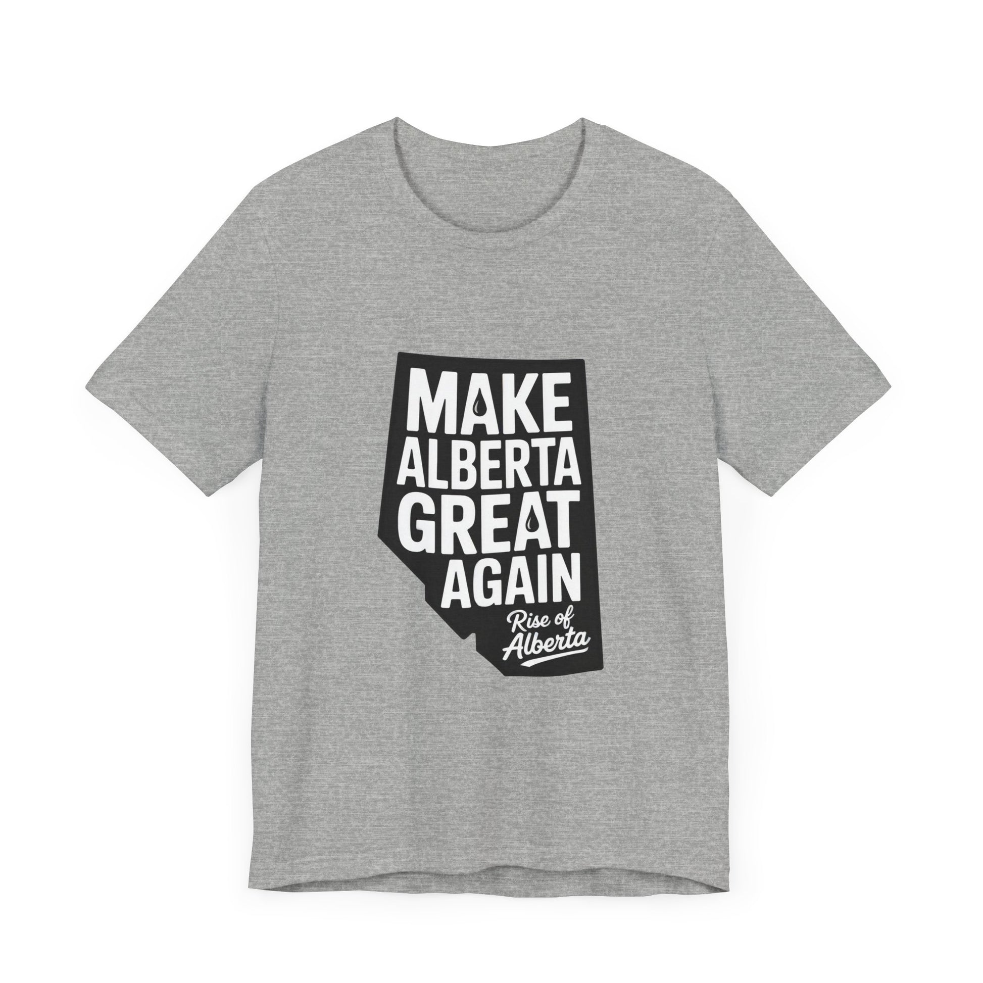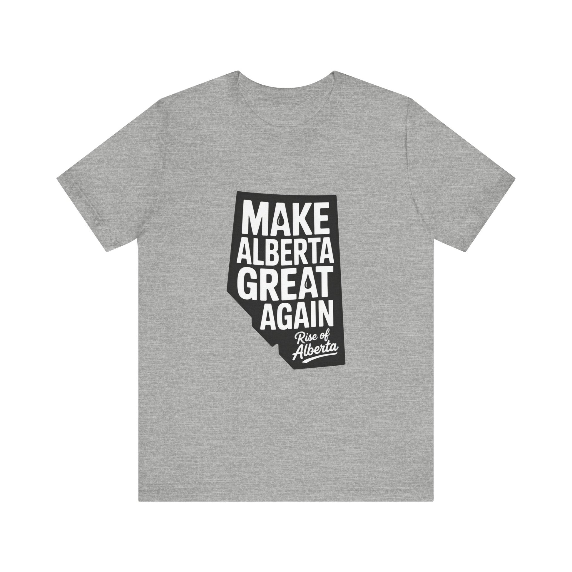 This Make Alberta Great Again T-Shirt is a unisex shirt showcasing the slogan within a bold outline of Alberta. It is perfect for everyday wear for supporters of Alberta's Sovereignty, giving off a patriotic and expressive vibe. This shirt is relevant to those who are passionate about Alberta's independence and sovereignty. It is ideal for wearing to rallies, protests, or casual outings in support of Alberta. Perfect for Alberta Day celebrations and Independence Day events.
