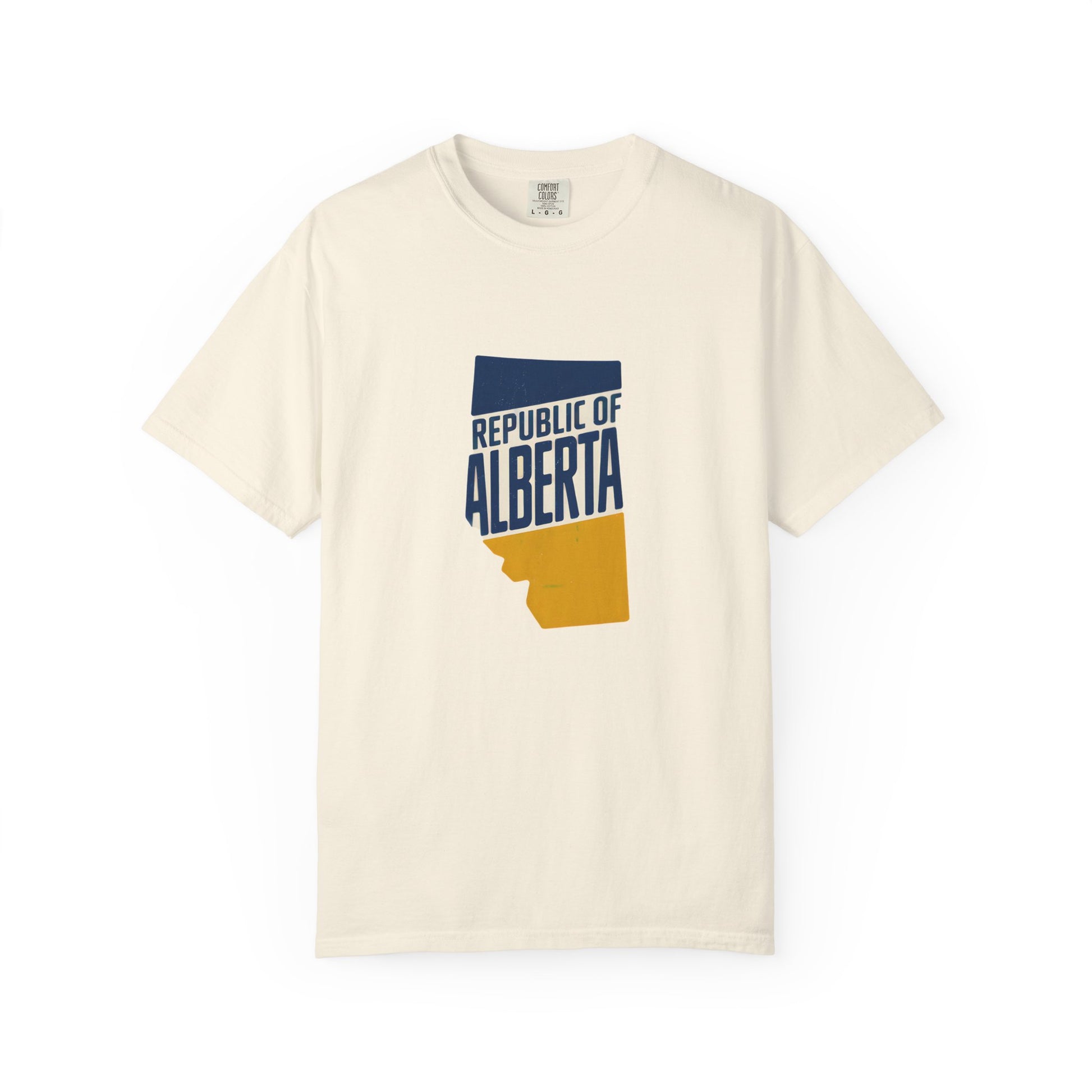 Republic Of Alberta T-Shirt, a t-shirt for supporters with Alberta's Independence featuring a bold image of the province in a retro colorway. Perfect for those who want to show their pride and support for the cause. Ideal for wearing during Alberta Independence Day celebrations or political rallies.