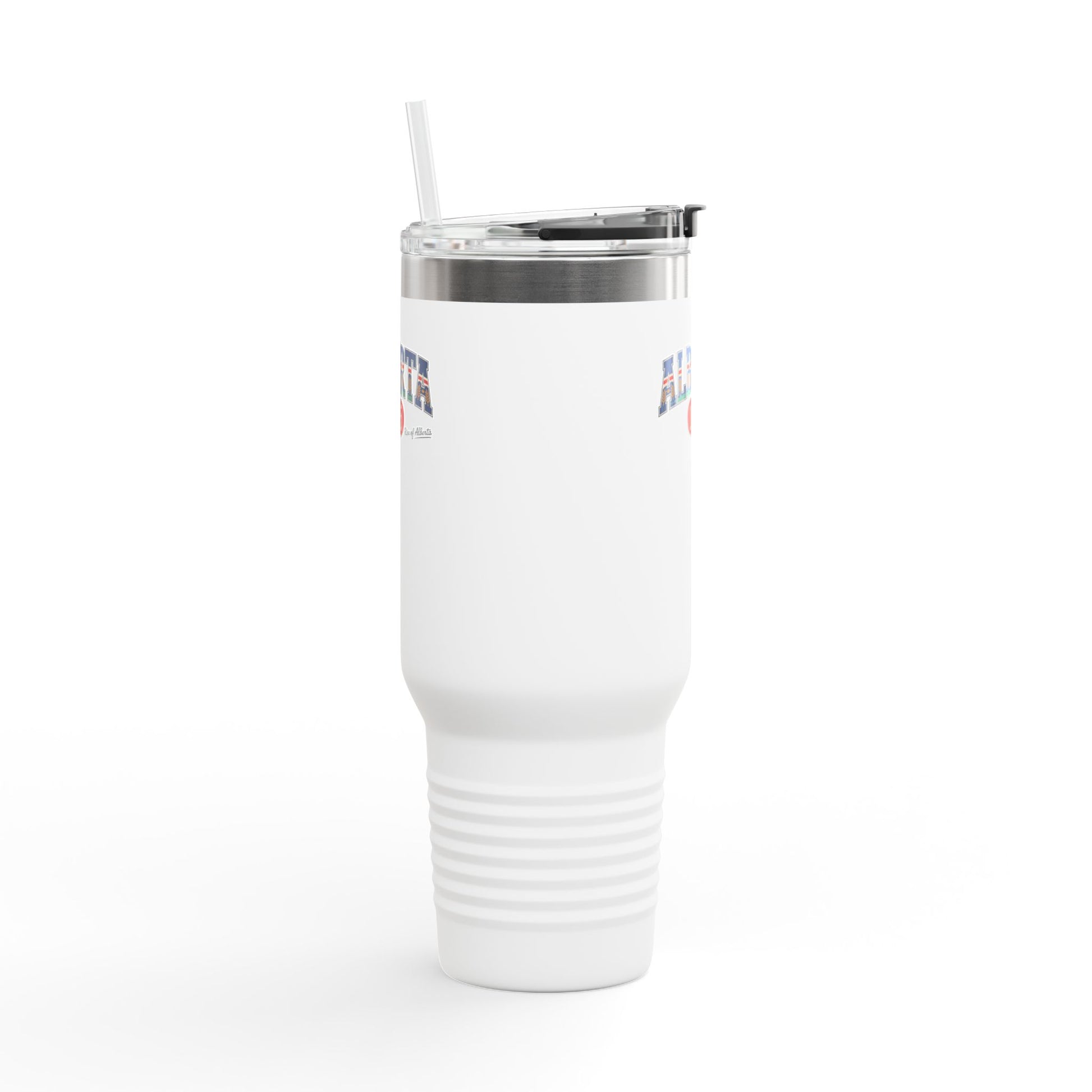 The Aberta 1905 Travel Mug is a 40oz insulated travel mug with a convenient handle and leak-proof lid. Made from high-quality stainless steel, it keeps drinks hot or cold for hours, making it perfect for long trips and outdoor activities. The UV-DTF printing gives it a unique and vibrant design, suitable for travel enthusiasts and daily commuters. Ideal for holidays, road trips, and daily use.